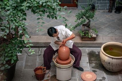 生活在云南省紅河哈尼族彝族自治州建水縣碗窯村的徐榮洪是當(dāng)?shù)匦旒腋G的第五代制陶藝人,也是非遺建水紫陶燒制技藝的傳承人。 泥料制備、拉坯造型、濕坯裝飾、雕刻填泥、高溫?zé)?、無釉磨光……要想做出精良的紫陶工藝品,每個(gè)流程都需要潛心鉆研?!爸谱骷妓嚟h(huán)環(huán)相扣,某一道工序出現(xiàn)紕漏,燒出來就是瑕疵品。” 徐榮洪拿起刻刀,對陶坯表面開始進(jìn)行雕刻。 今年57歲的徐榮洪小時(shí)候就跟著長輩上山挖陶泥,多年來堅(jiān)持鉆研建水紫陶的制作技藝。 徐榮洪介紹說,作為紫陶藝人,以陶為紙,根據(jù)器型將不同的文化與藝術(shù)形式注入其中,使其具有無限活力。非遺文化閃爍著人類智慧的光芒,也承載著人們心底的情思鄉(xiāng)愁。