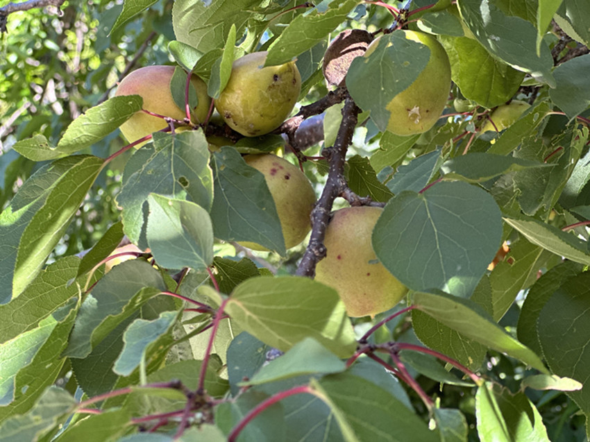 彩色鋪裝的通村路兩邊,成片的苞谷林正在背紅纓,風中響著緊密結實的聲音。各種果木枝繁葉茂,結滿了寶石般紅紅綠綠的果子。一排柴垛上方,伸出很大一片橙色的小果子,沒有葉子,我們像賞花一樣欣喜于它的紅艷。嘉絨姑娘悄默地走在我們身邊,她的手里擺弄著一片草葉,安靜而美好,是感到這一路上的莊稼果木已經(jīng)足夠繁盛。