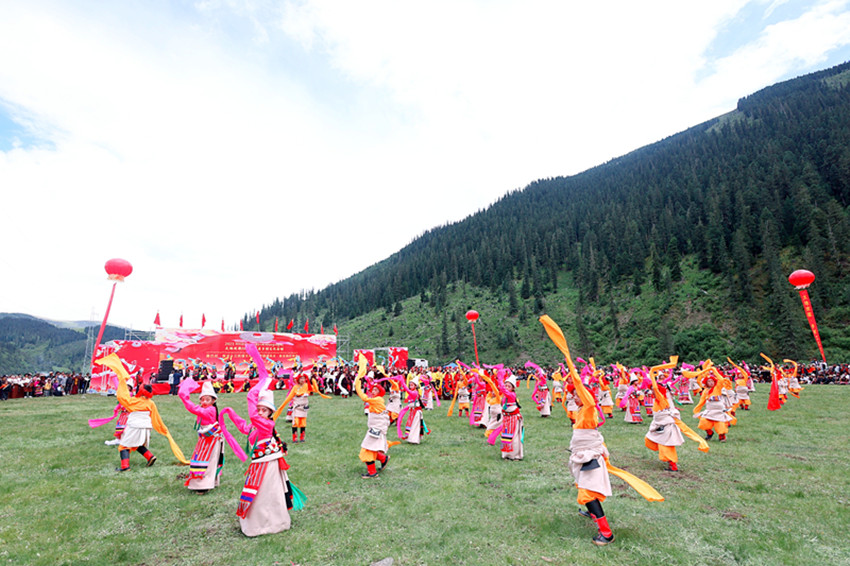 圖為“福地色達 金馬之邀”游牧文化旅游季開幕式表演。