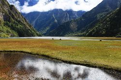 巴旺海海拔大致3100米左右,雪山腳下神秘的海子,發(fā)源于貢嘎主峰,從冰川上一路流下,順著貢嘎山西坡經(jīng)典的徒步路線邊上流淌,奔騰到了貢嘎山腳下的群山懷抱中,形成了而今的巴旺海。