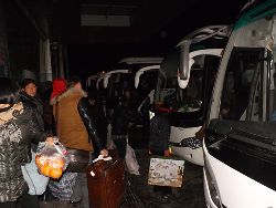 康定的凌晨天氣異常寒冷,但車站候車室的椅子上已坐了不少帶著大包小包的乘客。徐世貴和妻子在高爾寺山隧道工程做工,臨近春節(jié),他們跟老板請了假,提前回河南老家。由于擔(dān)心買不到票,早上5點就來到車站,而發(fā)車時間是上午8點。“春運期間,沒想到票很快買到,早知道就不用那么急了。”徐世貴有些懊悔地說,“不過車站的服務(wù)質(zhì)量高了。我們坐在這里很暖和,還能喝上一杯熱騰騰的開水,有一種回到家的感覺。”
