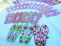 瀘定縣嵐安刺繡是純手工特色工藝品。1300多年前,羌族工藝就流傳于嵐安鄉(xiāng),刺繡工藝便是其中一種。嵐安刺繡在操作上有平繡、牽繡 、挑花和納花;工藝分圖譜和剪紙,圖譜是繡大型的如圍裙、小兒抱裙、背心等,先勾畫圖譜,按圖配色選線再繡;剪紙是用蠶繭殼剪成圖形,再固定在所繡之物上,配色選線繡,所繡之物多為涉獵帽子、鞋子、婦女的針插子、扇插子等。主要繡字、花、草、樹、鳥、獸、昆蟲、山水等。全鄉(xiāng)有800余農戶,每戶都有一兩人會從事手工刺繡。刺繡產品可作贈送品、商品、旅游紀念品及各種裝飾品。(徐慧 文/圖)