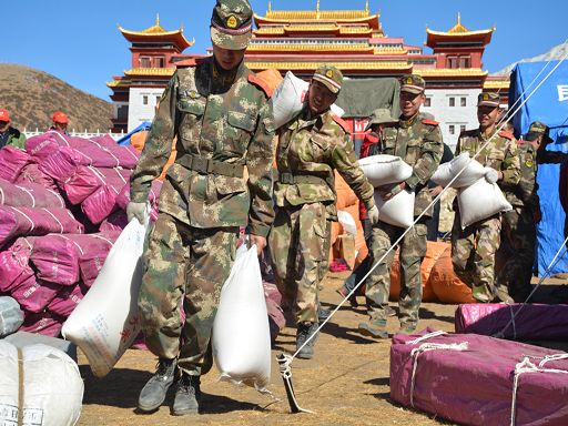 武警甘孜州森林支隊(duì)官兵竭力救災(zāi)。