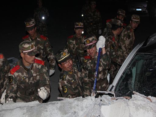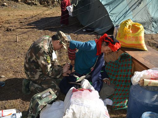 地震發(fā)生僅1小時,總隊(duì)政委金德成即帶前指,從雅江翻越海拔4400余米的高爾寺山向塔公方向開進(jìn)。與此同時,應(yīng)急救援分隊(duì)分別從康定星夜兼程,疾速奔赴重災(zāi)區(qū)。21時03分,前指抵達(dá)震中塔公鎮(zhèn)奪讓一村和受災(zāi)嚴(yán)重的木雅祖慶小學(xué),深入村寨了解受災(zāi)情況,派出38名應(yīng)急救援官兵,對房屋受損嚴(yán)重的7戶災(zāi)民先期展開救援,搶挖出被倒塌墻體壓埋的車輛2臺。并及時來到康定地震前線指揮部,請領(lǐng)任務(wù)。連夜為木雅祖慶小學(xué)師生搬運(yùn)棉被、搭建帳篷,幫助受災(zāi)師生順利度過震后第一個夜晚。