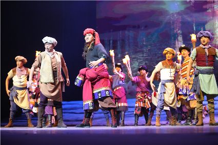 初生的音樂劇《康定情歌》是個聽話謙遜的孩童,專業(yè)人士的諄諄教誨一定會牢記在心;他也是個具有思鄉(xiāng)情結(jié)的游子,自己的一顰一笑都流露出濃郁的民族風(fēng)采;同時他也是個頑強拼搏的逐夢少年,即便汗水和淚水匯成一道道溝壑,依然挺胸不低頭,只為在明天,成為更好的自己。 (圖片由州歌舞團提供)