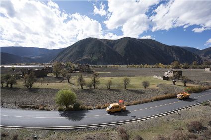新都橋,被譽(yù)為攝影家的天堂,在這個風(fēng)景如畫的地方,到了秋季,筆直的道路兩旁滿是金色的白楊樹,高大的樹木、金黃的樹葉,在藍(lán)天、白云和燦爛陽光的映襯下,就是一幅美麗的畫卷。