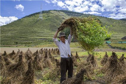 康定市姑咱鎮(zhèn)達(dá)杠村村民李翠軍一邊采摘著蘋果,一邊喜悅地告訴記者,達(dá)杠所產(chǎn)的蘋果個(gè)頭大、色澤好、吃味好、耐儲(chǔ)藏,到目前,全村蘋果種植面積800多畝,去年蘋果產(chǎn)量160萬(wàn)斤,今年雨水好,蘋果產(chǎn)量將猛增到200萬(wàn)斤以上。目前,村子里蘋果種植大戶家庭年收入過10萬(wàn)元的就有20多戶。康定市將達(dá)杠村打造成川藏觀光農(nóng)業(yè)第一村。按照規(guī)劃,村里會(huì)進(jìn)一步擴(kuò)大蘋果種植面積,以蘋果利用為核心,發(fā)展“春賞花、夏攝影、秋摘果、冬體驗(yàn)”四季觀光農(nóng)業(yè)產(chǎn)業(yè)。五谷豐登六畜興旺,甘孜高原共慶豐收。農(nóng)民豐收節(jié),它既是億萬(wàn)農(nóng)民慶豐收、曬豐收的節(jié)日,也是全社會(huì)享豐收、助增收的節(jié)日;既寄托著農(nóng)民的追求、農(nóng)民的希冀,也承載著全體中華兒女的深情與追憶;中國(guó)農(nóng)民豐收節(jié),農(nóng)牧民收獲的不只是甜蜜蜜的果實(shí),鼓起的不只是沉甸甸的荷包,更是滿滿的榮譽(yù)感、幸福感、獲得感!