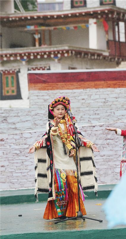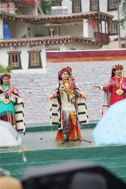 比賽開(kāi)始不久,現(xiàn)場(chǎng)下起了小雨,但絲毫沒(méi)有影響熱烈氣氛。臺(tái)上的佳麗們,略施粉黛,穿著承載著嘉絨風(fēng)情文化的民族盛裝,自我介紹,優(yōu)雅展示。臺(tái)下,則是鄉(xiāng)民齊聚,熱情高漲。大家紛紛到場(chǎng),為佳麗們加油助威。據(jù)介紹,丹巴出美女始于漢代的東女國(guó)時(shí)期。古時(shí)每年農(nóng)作物收獲的時(shí)節(jié),丹巴各村各寨都要舉行盛大的選美和祭祀活動(dòng)。