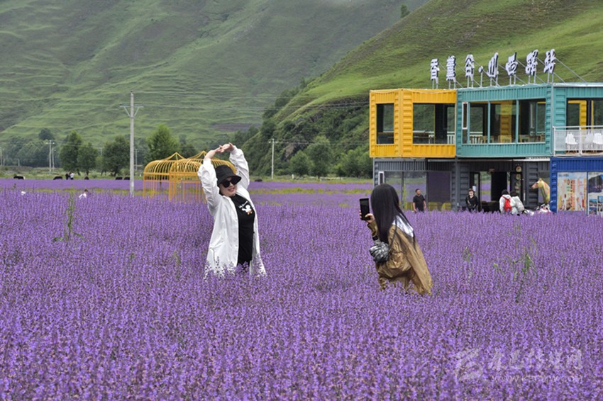 是時(shí),微風(fēng)乍起,黛山環(huán)抱下的花海漾蕩著瀲滟的紫光,裹挾著無邊的浪漫和淡淡的芳香,向棧道上的游人涌來,彌漫到腳邊、四溢到身旁——踏訪這個(gè)藏在川西高原的“普羅旺斯”詩境實(shí)地,一幅美不勝收的“夏日高原送爽圖”令人心迷神醉。