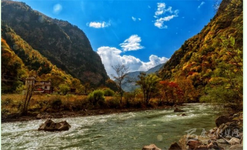 東谷河原名牦牛河,在丹巴縣五個主干水系中,它是最小的一條,兩岸多為峽谷地貌,僅在支溝匯合處出現(xiàn)有平壩草地。在陡峭高聳的河谷兩岸,針闊葉混交林呈現(xiàn)出深淺不同的綠色,既有青黛,墨綠,又有嫩綠,草青及四季輪番開花的不同品種的大小杜鵑。還不時有珍禽出沒。每當(dāng)秋高氣爽的季節(jié),一團(tuán)團(tuán),一簇簇的紅葉伴隨杜鵑花在林間綻放,伴以宛轉(zhuǎn)的啾啾鳥嗚;河水清澈明亮,時而奔騰而下,形成飛瀑,時而伴著叮咚之聲潺潺而過,這種美景何處能有?老革命家胡耀邦同志游覽后,對此青山綠水贊不絕口,并稱之為“天然盆景”!盆景藝術(shù)一向以“無聲的詩詞,立體的畫卷”來形容。牦牛谷景點(diǎn)正是一個有著巨大篇幅的詩詞,一個有著廣闊的立體畫卷。