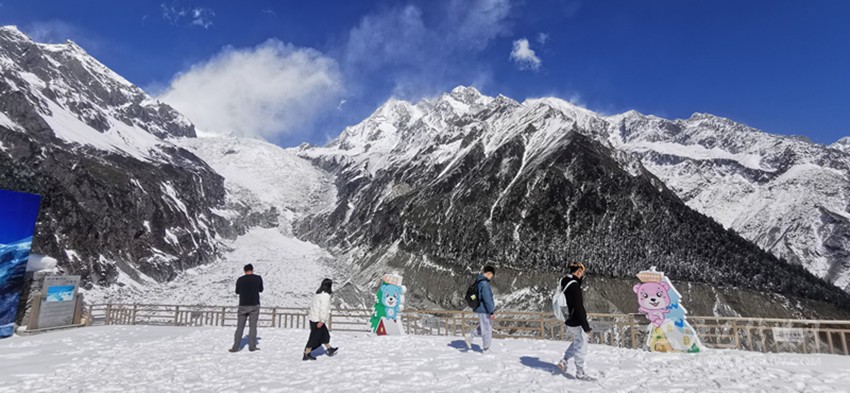 “前天從網(wǎng)上看到海螺溝景區(qū)即將開(kāi)放的信息,別提多帶勁兒了。這次疫情發(fā)生就一直在家呆著,悶太久了,就想著疫情可控可防的時(shí)候,一定要來(lái)川西走走,剛好海螺溝離成都車程近,網(wǎng)絡(luò)風(fēng)評(píng)也是有口皆碑的?!边h(yuǎn)道而來(lái)的寧波游客吳先生目之所及盡是玉樹(shù)瓊枝、銀裝素裹的雪原冰川風(fēng)光,激動(dòng)不已地說(shuō):“透透氣、玩玩雪、泡泡湯,回歸自然的感覺(jué)真太好了!”