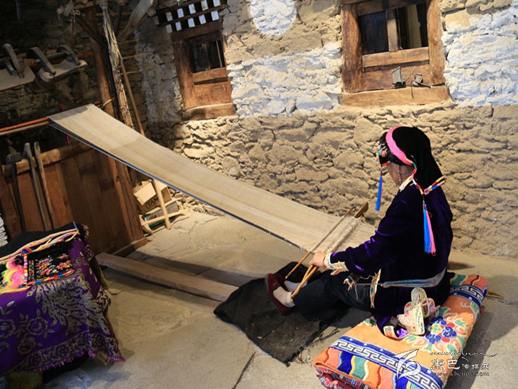 穿過古樸的大門,步入館中,映入眼簾的是古老的民間紡織技藝。一位藏族老阿媽端坐在古董般的織布機(jī)前,聚精會神地編織布匹,見到游人微笑回應(yīng),并未停下她手上的工作。年逾60的擁天秀,從十幾歲便學(xué)習(xí)織布,此間從未間斷。隨著紡織機(jī)逐漸被淘汰,擁天秀已成為傳承這門古老技藝的“活化石”。非遺展示館開館時,擁天秀主動表示,愿在此地免費(fèi)為游客展示丹巴紡織技藝。 “我喜歡丹巴刺繡和紡織工藝,平時在家里也會做,現(xiàn)在眼睛不很好,所以刺繡沒有辦法做了。游客們很喜歡在這里看我織布,他們有什么問題,我都會給他們講解。”古老的嘉絨紡織技術(shù),通過擁天秀的雙手,漸漸被人們熟知,無數(shù)張游人與她的合影也被傳至網(wǎng)絡(luò)。經(jīng)她現(xiàn)場紡織,價(jià)值600元一匹的純手工布銷量也節(jié)節(jié)攀升,擁天秀研習(xí)多年的手工活在展示館中終于有了“用武之地”。