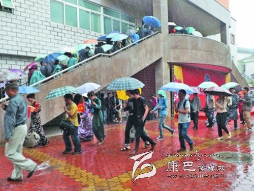 5月16日,清晨,成都陰郁的天氣毫不留情灑下急雨。西南民大科技館前,精心布置的紅色主席臺在雨簾中盛開一份火紅的心愿。前來觀展的人們撐著一把把雨傘在雨中等待。各大媒體記者冒雨進行報道。