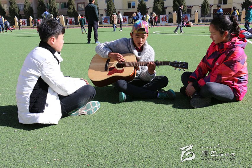 “白云下一座溜溜的城/聽(tīng)著溜溜的歌聲/李家那溜溜的大姐喲/溜溜愛(ài)上藏家大哥喲/尋夢(mèng)在溜溜的跑馬山/我推著金桶溜溜轉(zhuǎn)/折多河溜溜穿城過(guò)喲/頌經(jīng)聲溜溜的傳承喲/悠揚(yáng)琴聲在溜溜小城/我溜溜等待著愛(ài)人/跑馬山龍打溜溜撒喲/心就在溜溜城中活……”最近一首名叫《溜溜》的歌曲刷爆了記者的朋友圈,不到一天的時(shí)間點(diǎn)擊率達(dá)到12000多,干凈的嗓音碰上吉他、貝斯等流行元素,給聽(tīng)眾帶了一種不同的音樂(lè)享受?!读锪铩返脑~曲作者周麒(當(dāng)然他也是原唱之一)和主唱昂汪央金拉姆、周楠都是來(lái)自康定中學(xué)的學(xué)生,在冬日的午后,記者在康定中學(xué)的籃球場(chǎng)見(jiàn)到了這三位一臉天真的原創(chuàng)者。初見(jiàn)記者,他們還有一些靦腆、緊張,但是一談到音樂(lè),他們立刻有了說(shuō)不完的話(huà)。