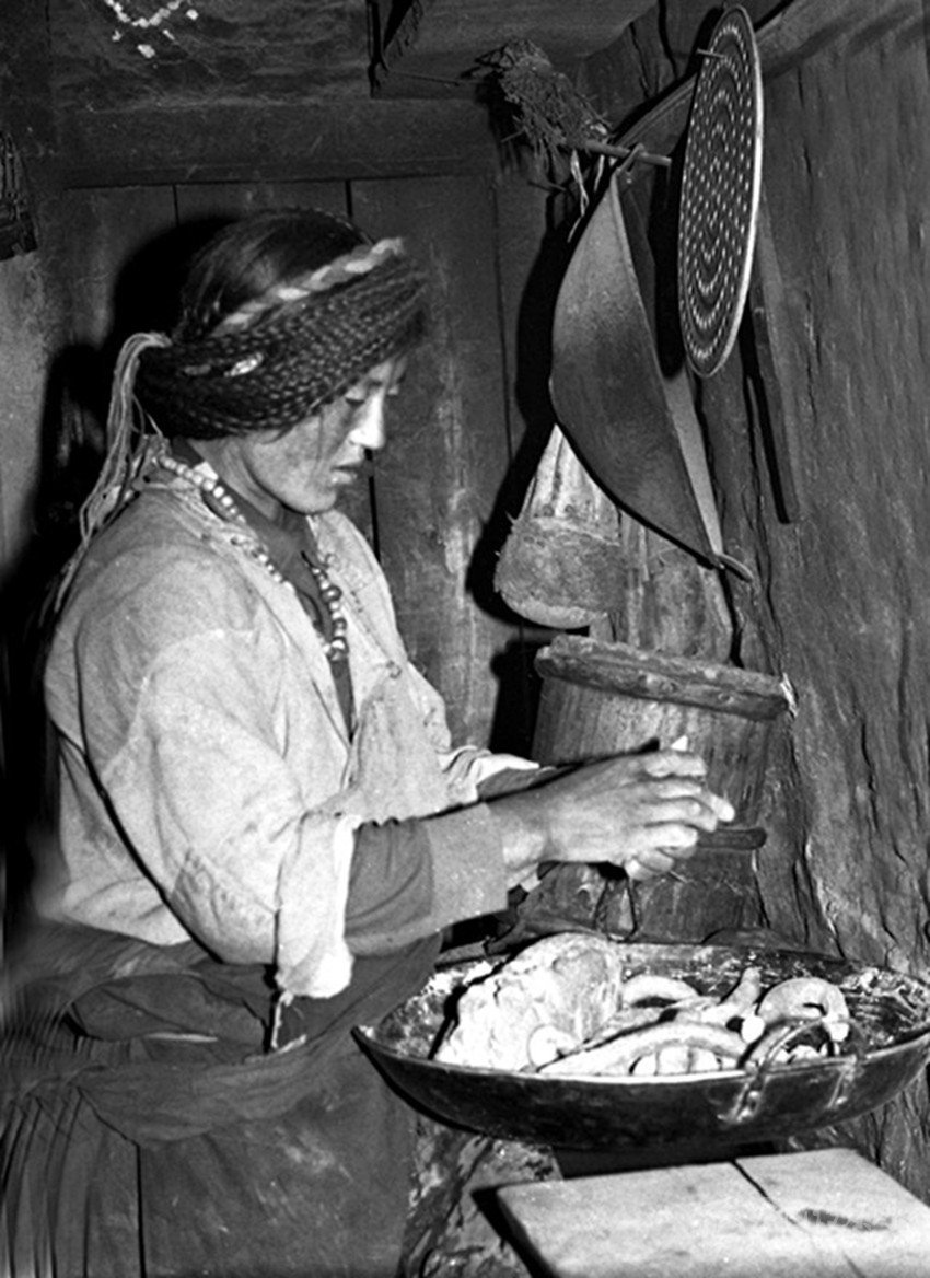 再就是有腌制酸菜的好手魚(yú)通婦女。魚(yú)通女,多是大腳丫頭,高大壯實(shí),堪稱女漢子,且善良賢淑、憨厚能干,里里外外拿得起放得下,看不到一點(diǎn)窈窕淑女的影子。所以早年康定地方流行這樣的禪話大風(fēng)塆的風(fēng),瓦斯溝的蔥,要討婆娘到魚(yú)通。高高山上的魚(yú)通女,任你溜溜的求喲!。