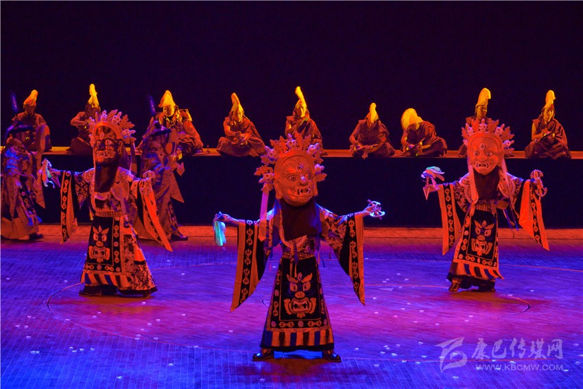 《亞丁?三怙主》歌舞劇不僅從藏族人民日常生產(chǎn)生活中提煉出很多舞蹈文化元素,還對宗教樂舞進行了合理的借鑒。舞劇中用了道孚嘛呢鍋莊、德格卓且、巴塘弦子、爐霍鍋莊、石渠真達鍋莊、丹巴鍋莊、稻城鍋莊等民間舞蹈等元素,加以深化再創(chuàng)作,把原有的民間舞蹈的步伐、舞姿進行夸張性的舞臺處理,并配以適當(dāng)?shù)年犘危愿舆m應(yīng)劇場舞臺的表演;大膽創(chuàng)新引入寺廟樂舞,寺廟樂舞本是藏傳佛教寺廟在宗教節(jié)日表演的祈福性舞蹈,舞劇編創(chuàng)人員合理借用寺廟樂舞的音樂、步伐、面具等,用以表現(xiàn)藏族人民與自然抗?fàn)?,不懼不屈的精神面貌;用泥土筑墻本是藏族人民建造房屋時的一種建筑技藝,在民間演繹成為地方舞種,舞劇編創(chuàng)人員將筑墻的基本步伐和動作加以提煉,編創(chuàng)了一段約兩分鐘的打舞,用夸張的步伐和動作,配以鏗鏘有力的勞動號子,將豪氣灑脫的打墻舞氣氛推向高潮,以表達藏族人民的勤勞、勇敢與豪邁。州委黨校高級講師陶勇說:“《亞丁?三怙主》歌舞劇旨在講解香格里拉之魂,詮釋亞丁三怙主的本意,闡釋三座神山文化包含佛陀的核心教義。亞丁三怙主即仙乃日(觀世音菩薩)、央邁勇(文殊菩薩)、夏諾多吉(金剛手菩薩),它們分別象征慈悲、智慧、力量。這部歌舞劇是解讀藏民族精神文化、弘揚藏民族真善美勇、傳遞康巴文化真諦的民族歌舞劇。歌舞劇通過《序》、《慈明》、《慧明》、《力明》、《尾聲》五個篇章,充分展示藏族傳統(tǒng)文化中熱情、好客、善良、慈悲、勇敢、追求和諧的優(yōu)秀價值觀,將民族文化融入到社會主義核心價值觀,展現(xiàn)了當(dāng)代人民群眾的幸福生活。同時對游客來講不僅豐富了亞丁文化,填補了游人僅僅觀賞雪山不知文化內(nèi)涵的短板,為以后推介甘孜州做了很好的示范?!?/span>