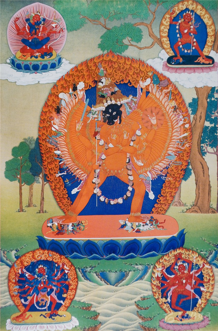 當(dāng)尼泊爾精致風(fēng)格的繪畫傳入藏區(qū),通過藏族畫家靜穆的心靈,將粗獷和細(xì)膩的相交織,把紅色和綠色共交響,讓嫵媚與莊嚴(yán)相融合,形成了具有西藏審美的風(fēng)格變體。其中,夏魯寺繪畫就是這種典型風(fēng)格。它有著大面積的色塊對比,又會在局部做精致的裝飾,這正是尼泊爾藝術(shù)影響下的西藏繪畫風(fēng)格。