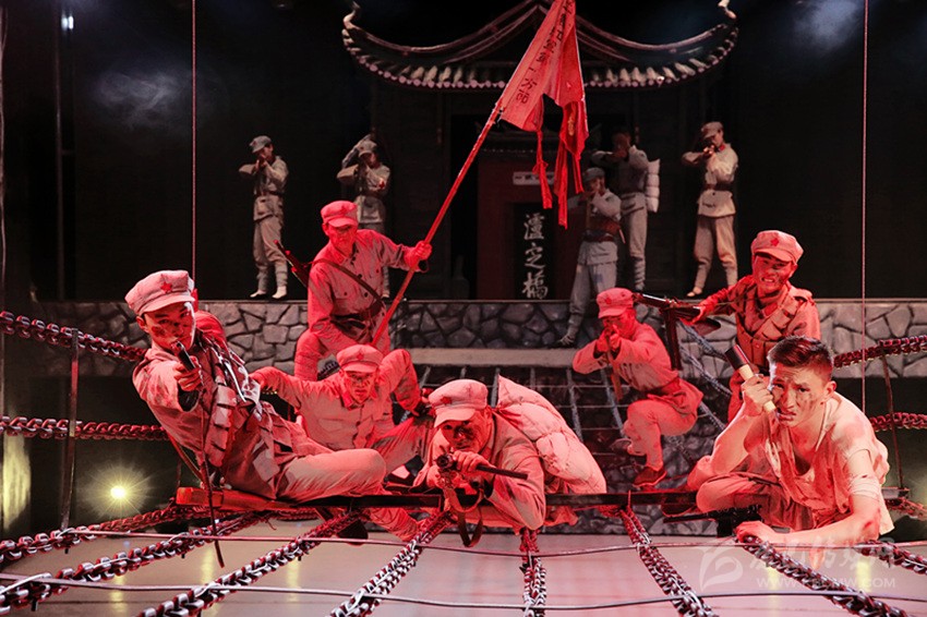 今年5月29日,《飛奪瀘定橋》實景劇正式在瀘定公演。劇目在充分尊重歷史的前提下,通過“夜襲安順場”“強渡大渡河”“神兵天降”“疾行240”“飛奪瀘定橋”5個篇章,融合戲劇、電影、舞蹈、全息投影和機械舞美等當代藝術于一爐,將紅軍戰(zhàn)士在危難時刻的奮勇戰(zhàn)斗展現(xiàn)得淋漓盡致。