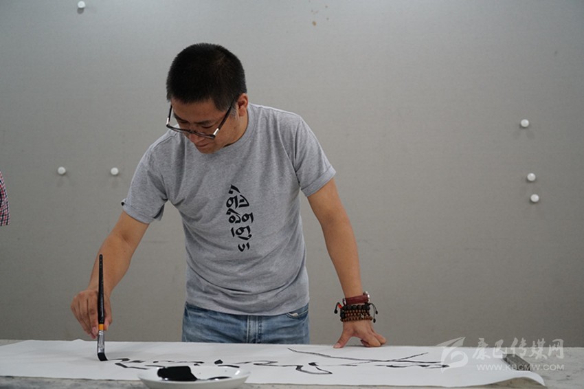 耷·瓊培擁有不少身份認(rèn)證,譬如:“新概念”唐卡創(chuàng)始人、傳統(tǒng)藏文書(shū)法藝術(shù)傳承人,歌者、畫(huà)家、詩(shī)人、學(xué)者,乃至當(dāng)代藝術(shù)家等不一而足。而在他看來(lái),與其“對(duì)號(hào)”上述任何頭銜,毋寧說(shuō)自己是唐卡沿襲至今的新時(shí)代探索者之一。