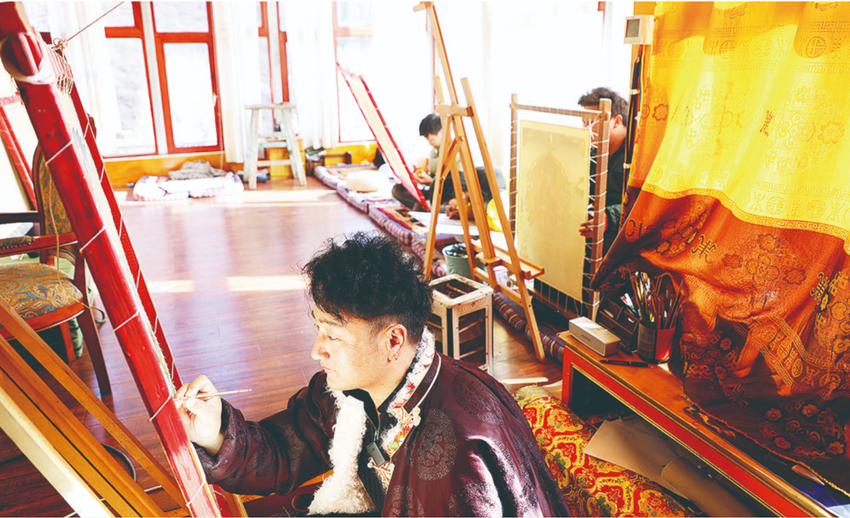 其麥(右)與學(xué)員們在傳習(xí)所內(nèi)認(rèn)真繪畫。