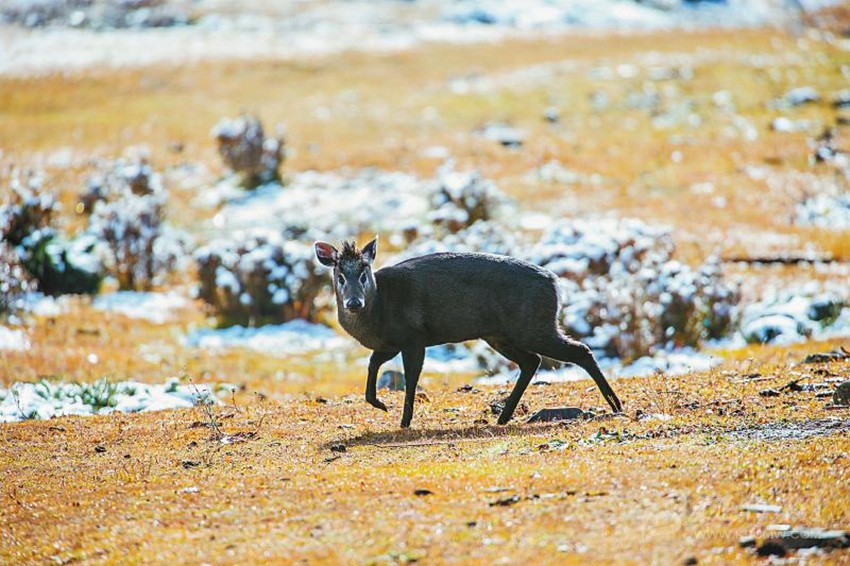 雖然沒(méi)拍到羚牛,貢嘎山卻讓他們拍下巖羊群、高原兔、毛冠鹿等大中型食草動(dòng)物的行蹤,還額外“贈(zèng)送”了不少意外之喜。