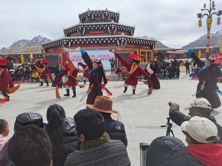 這邊搭起咨詢臺(tái)為群眾送衛(wèi)生、送科技、送法治,那邊搭起舞臺(tái)為群眾奉上了一場(chǎng)精彩的文藝表演。本土山歌《甘孜山歌》、獨(dú)唱原創(chuàng)歌曲、舞蹈《甘孜踢踏》《嶺·卓》等群眾喜聞樂見的節(jié)目輪番登場(chǎng),贏得陣陣掌聲。