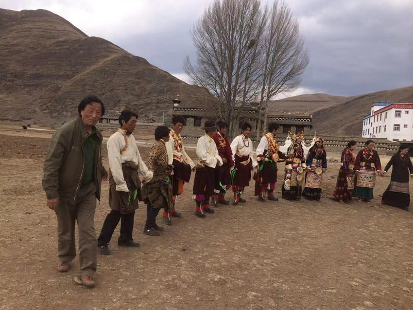 秋加措老師體驗民間舞蹈。