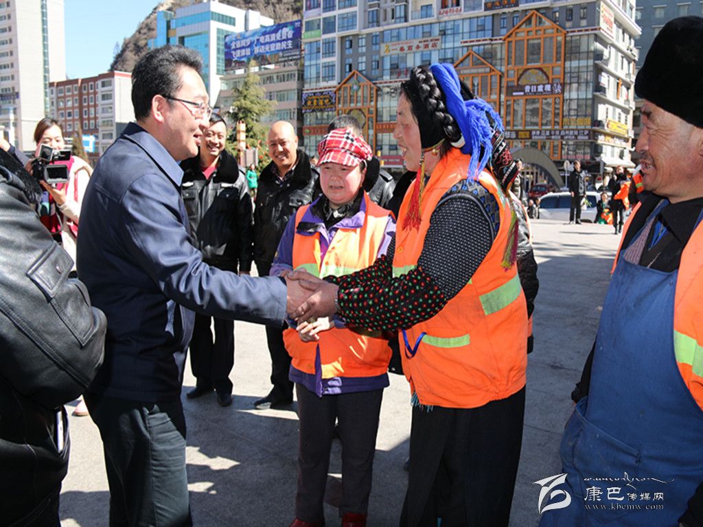 “辛苦了!祝您們新年快樂。”在康定情歌廣場(chǎng),益西達(dá)瓦向市政管理人員和環(huán)衛(wèi)工人們送上了新年祝福,感謝他們?yōu)閯?chuàng)造整潔、優(yōu)美的城市環(huán)境作出的貢獻(xiàn)。益西達(dá)瓦說,近年來康定在城市建設(shè)和管理上取得了很大的成績(jī),2014年躋身中國最美麗縣城第27名,這個(gè)成績(jī)的取得離不開廣大市政管理人員和環(huán)衛(wèi)工作者默默無聞地奉獻(xiàn),感謝你們?yōu)榍鍧嵆鞘懈冻龅男燎趧趧?dòng)。