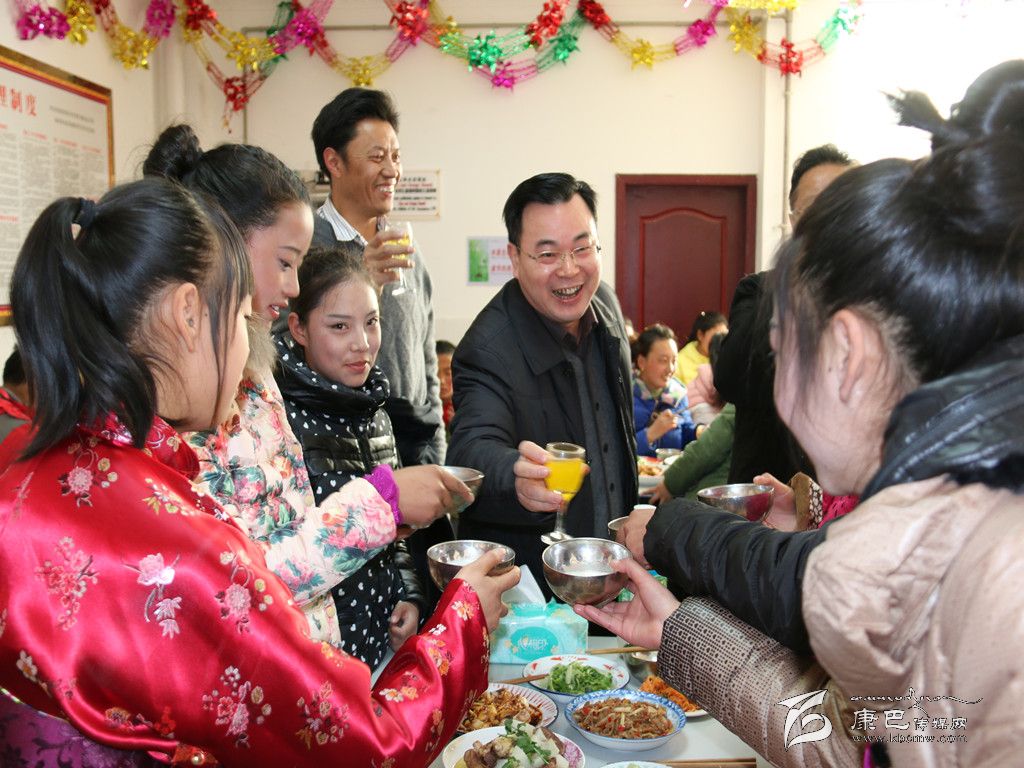 “現(xiàn)在我們共同舉杯,祝愿我們的老師們家庭幸福,祝愿孩子們學(xué)習(xí)進(jìn)步,健康成長(zhǎng),新年有新成就,扎西德勒。干杯!”胡昌升以茶代酒,祝福大家春節(jié)愉快、萬事如意。