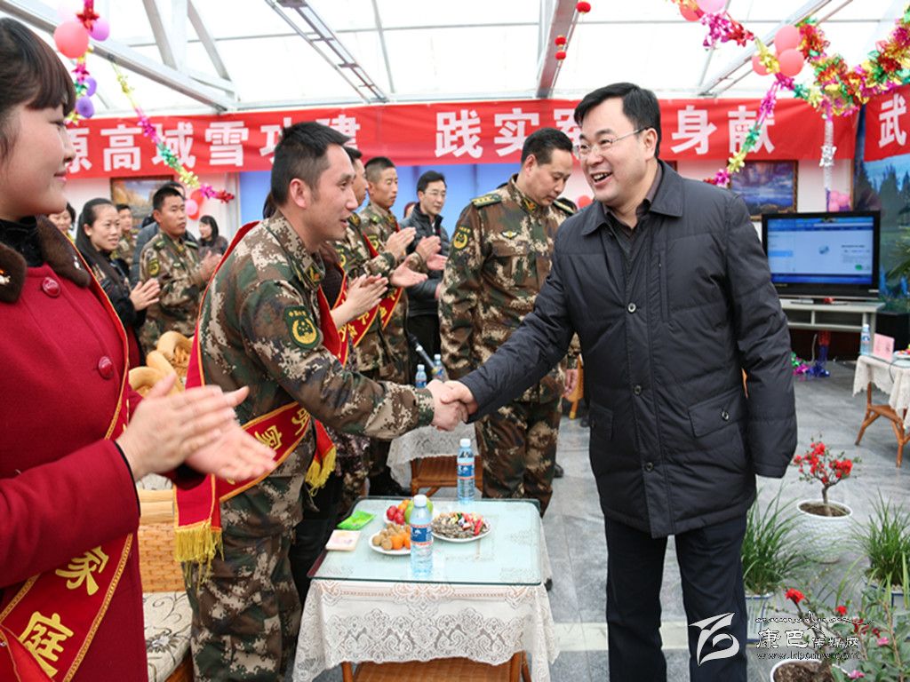 本網(wǎng)訊(記者 張濤 文/圖) 大年初二(2月20日)下午,州委書記胡昌升專程來到武警二支隊與各位軍人家屬歡聚一堂,共度新春佳節(jié)。代表州委、州政府和百萬甘孜兒女,對來康定過年的35名軍嫂表示熱烈歡迎,對各位軍嫂為甘孜發(fā)展穩(wěn)定和民生所做出的無私奉獻表示衷心感謝,向全州廣大軍屬致以崇高敬意!