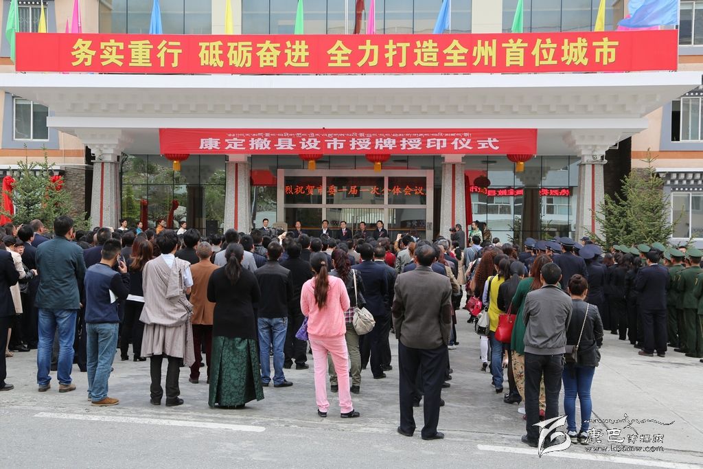 康定從1991年開始啟動(dòng)撤縣設(shè)市申報(bào)工作,經(jīng)過(guò)24年的不懈努力和積極爭(zhēng)取,2015年2月17日,經(jīng)國(guó)務(wù)院批準(zhǔn),國(guó)家民政部批復(fù),同意撤銷康定縣設(shè)立康定市,康定成為我省藏區(qū)首個(gè)縣級(jí)市。