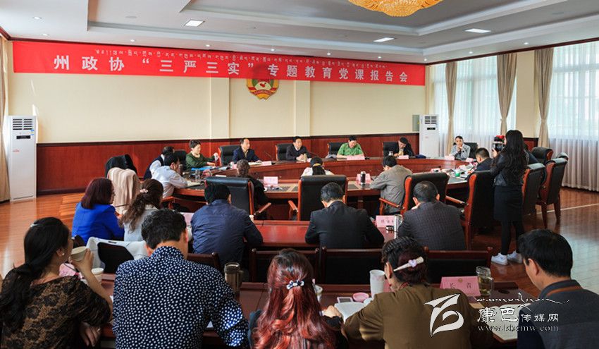 2015年5月28日上午,州政協(xié)舉行“三嚴三實”主題教育黨課報告會,正式啟動機關“三嚴三實”專題教育。州政協(xié)黨組書記、主席易凡作專題教育黨課報告。易凡指出,搞好“三嚴三實”專題教育,人民政協(xié)就是要堅決按照中央和省、州部署,以問題意識為導向,深入了解“三嚴三實”提出的背景、核心要求、發(fā)展脈絡及現(xiàn)實意義,不斷提高忠誠、大局、擔當、干凈和服務意識,爭做忠誠、干凈、擔當?shù)恼f(xié)人,為推動政協(xié)事業(yè)發(fā)展、助推美麗生態(tài)和諧幸福小康甘孜建設做出積極貢獻。易凡要求,踐行“三嚴三實”,著力點在一個“嚴”字、一個“實”字上。要堅持“嚴”字當頭、“實”字為本,認真踐行“三嚴三實”,以嚴與實的標準,推進協(xié)商民主創(chuàng)新發(fā)展。易凡強調,州政協(xié)要緊緊圍繞專題教育目標任務,堅持領導干部示范帶頭,抓嚴抓實四個“關鍵動作”,把謀劃推進當前各項工作和開展專題教育結合起來,以專題教育的扎實開展促進政協(xié)工作落實,用政協(xié)履職成果檢驗專題教育成效,統(tǒng)籌兼顧、協(xié)調推進,真正做到兩手抓、兩不誤、兩促進、兩提高,確保專題教育深入開展取得實效。