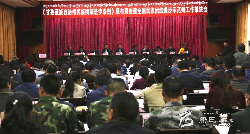 本網(wǎng)訊(記者 楊杰 文/圖)9月2日下午,我州召開《甘孜藏族自治州民族團(tuán)結(jié)進(jìn)步條例》頒布暨創(chuàng)建全國民族團(tuán)結(jié)進(jìn)步示范州工作推進(jìn)會,主要任務(wù)是貫徹落實(shí)8月1日頒布實(shí)施的《甘孜藏族自治州民族團(tuán)結(jié)進(jìn)步條例》,表彰命名全州第三批民族團(tuán)結(jié)進(jìn)步示范單位,總結(jié)交流示范州創(chuàng)建工作經(jīng)驗(yàn),安排部署今后一個(gè)時(shí)期的民族團(tuán)結(jié)進(jìn)步示范州創(chuàng)建工作。