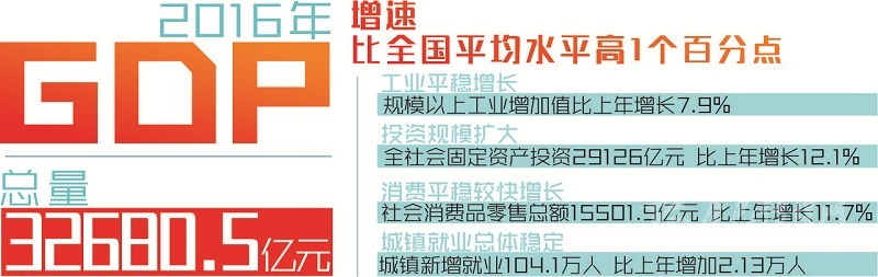 本網(wǎng)訊(記者 陳巖 梁現(xiàn)瑞 李龍?。?/span>1月22日,省政府新聞辦召開新聞發(fā)布會,發(fā)布2016年經(jīng)濟數(shù)據(jù)。經(jīng)國家統(tǒng)計局審定,2016年全省實現(xiàn)地區(qū)生產(chǎn)總值(GDP)32680.5億元,按可比價格計算比上年增長7.7%,增速比全國平均水平高1個百分點。全省經(jīng)濟運行呈現(xiàn)總體穩(wěn)定、穩(wěn)中有進(jìn)、穩(wěn)中有好的發(fā)展態(tài)勢,實現(xiàn)“十三五”良好開局。