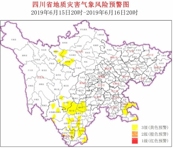 四川在線(xiàn)消息(記者 寇敏芳)6月15日,省自然資源廳發(fā)布全省地災(zāi)氣象風(fēng)險(xiǎn)預(yù)警。結(jié)合四川省氣象臺(tái)天氣預(yù)報(bào)情況,6月15日20時(shí)~6月16日20時(shí),全省地質(zhì)災(zāi)害氣象風(fēng)險(xiǎn)預(yù)警等級(jí)為3級(jí)(黃色預(yù)警,注意級(jí)),具體結(jié)果如下: