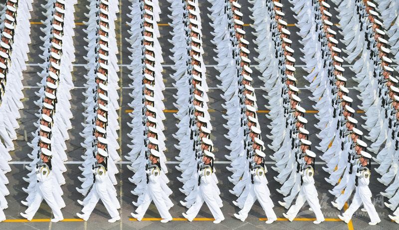 步伐鏗鏘、銳不可當,氣勢磅礴的徒步方隊動地而來;鐵流滾滾、排山倒海,威風凜凜的裝備方隊隆隆駛過;鷹擊長空、傲視蒼穹,氣勢如虹的空中梯隊呼嘯臨空……
