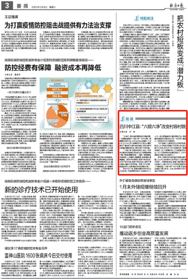 2月8日,經(jīng)濟(jì)日報對四川德陽中江縣在疫情防控中,搞好環(huán)境衛(wèi)生的好做法進(jìn)行了報道,全文如下: