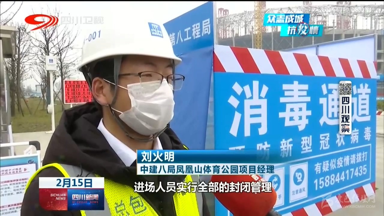 中建三局樂(lè)山市奧林匹克中心建設(shè)項(xiàng)目總工程師 董萬(wàn)龍:“我們盡可能把我們的施工人員分散,不要聚集,對(duì)內(nèi)我們做好防控物資的保障,口罩、消毒水以及酒精這些防疫物資已經(jīng)齊全?!?/p>