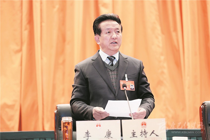 州人大常委會(huì)主任李康在州十二屆人大第四次會(huì)議上。