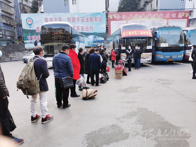 四川新聞網(wǎng)成都2月21日訊(記者 李丹)2月19日早上8時(shí),在四川省瀘州市合江縣客運(yùn)中心,全縣首趟農(nóng)民工返崗務(wù)工專車正要出發(fā)。90名合江籍農(nóng)民工在接受體溫檢測(cè)和手續(xù)檢查后,登上合江首列赴粵返崗專車,“點(diǎn)對(duì)點(diǎn)、一站式”到達(dá)深圳龍崗,奔赴各自的崗位復(fù)工。