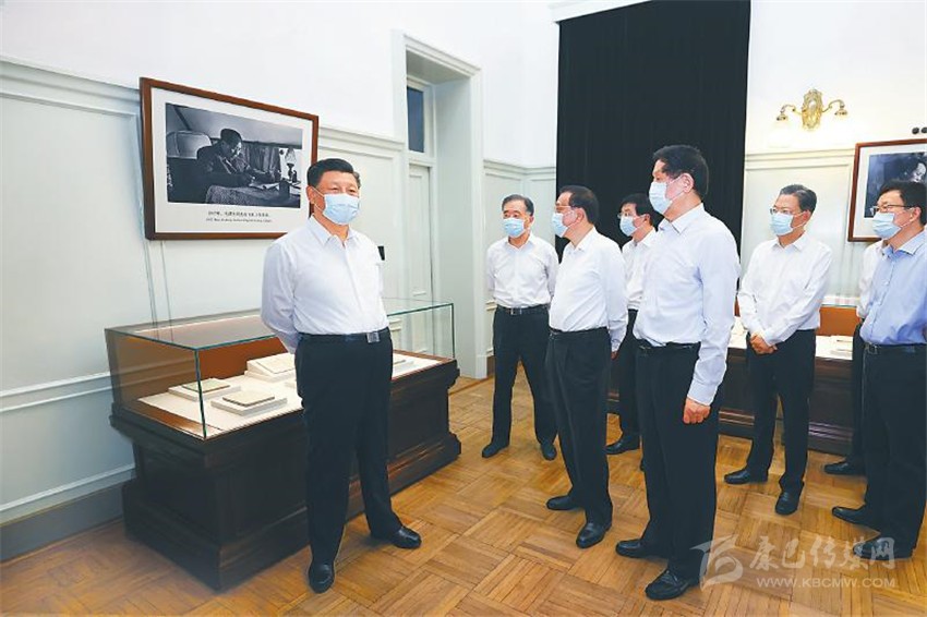 毛澤東同志在這里籌劃了新中國建立和建設的一系列大政方略。習近平帶領中央政治局同志來到這里參觀瞻仰,察看頤年堂大廳現(xiàn)場展陳,觀看毛澤東同志在豐澤園工作生活的影像短片,回顧毛澤東同志在這里主持召開的重要會議、作出的重大決策、會見的重要外賓,參觀毛澤東同志辦公區(qū)、會議室和藏書室,仔細察看毛澤東同志批改過的重要文件、閱讀過的書籍、穿過的衣物、使用過的日常用品和書信、手稿、照片等,追憶毛澤東同志的卓越功勛和崇高風范。習近平強調,北大紅樓和豐澤園在黨的歷史上都具有標志性意義,生動詮釋了中國共產黨是怎么來的、中華人民共和國是怎么來的,給我們上了一堂鮮活而又生動的黨史課。