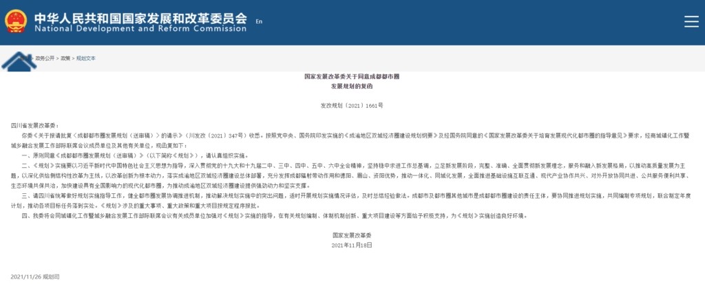 國家發(fā)展改革委批復同意成都都市圈發(fā)展規(guī)劃
