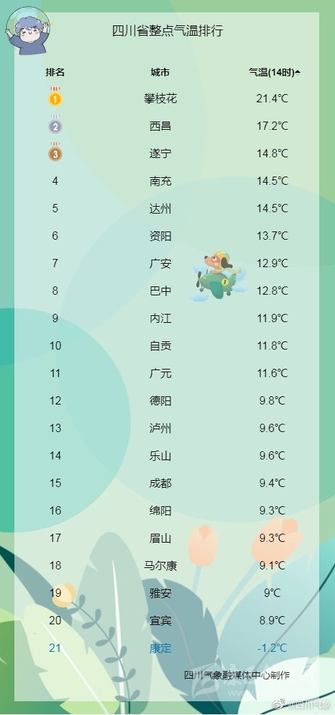 據(jù)四川省氣象臺預(yù)報,今天的天氣跟昨天差不多: