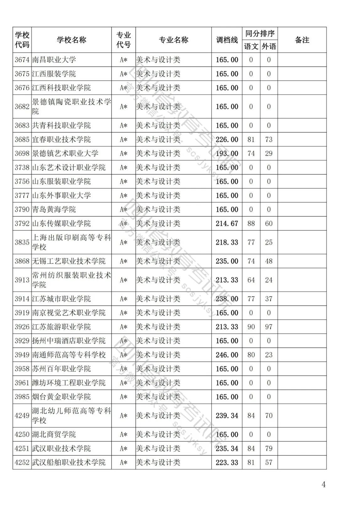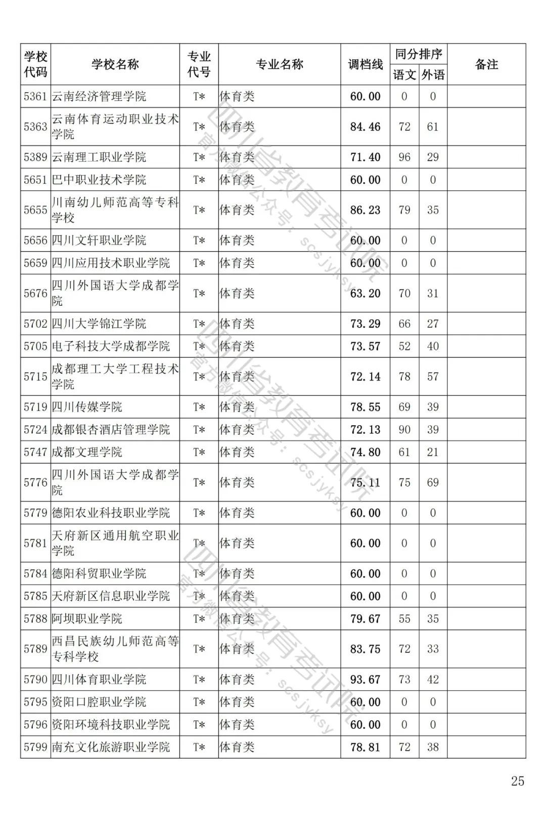 四川省2022年藝術(shù)體育類??婆{(diào)檔線出爐