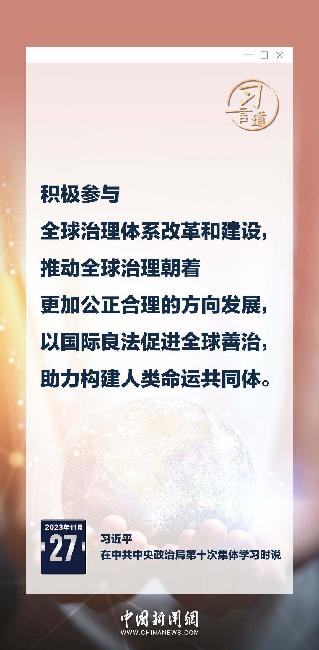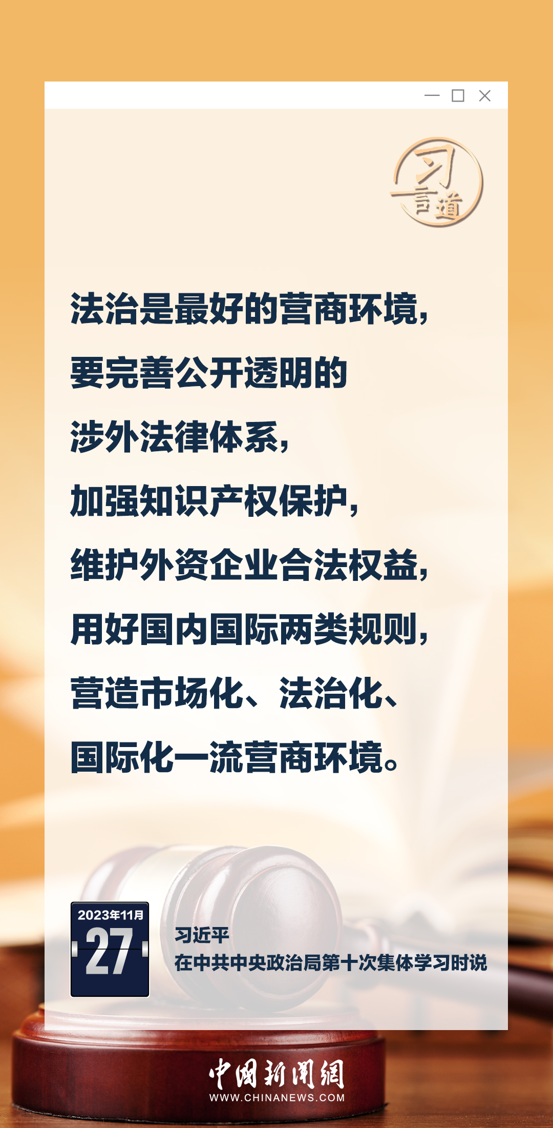 中共中央政治局11月27日下午就加強(qiáng)涉外法制建設(shè)進(jìn)行第十次集體學(xué)習(xí)。中共中央總書(shū)記習(xí)近平在主持學(xué)習(xí)時(shí)強(qiáng)調(diào)——