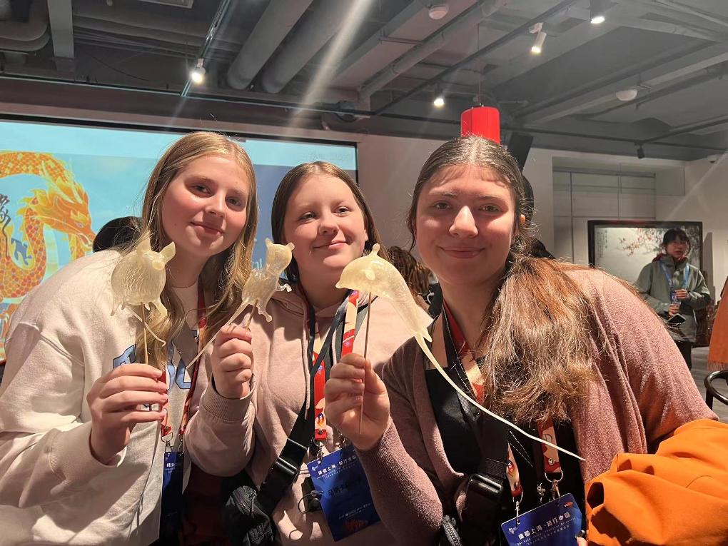??1月下旬,馬斯卡廷中學(xué)訪華代表團(tuán)學(xué)生在上海體驗(yàn)民俗活動(dòng)。(受訪者供圖)