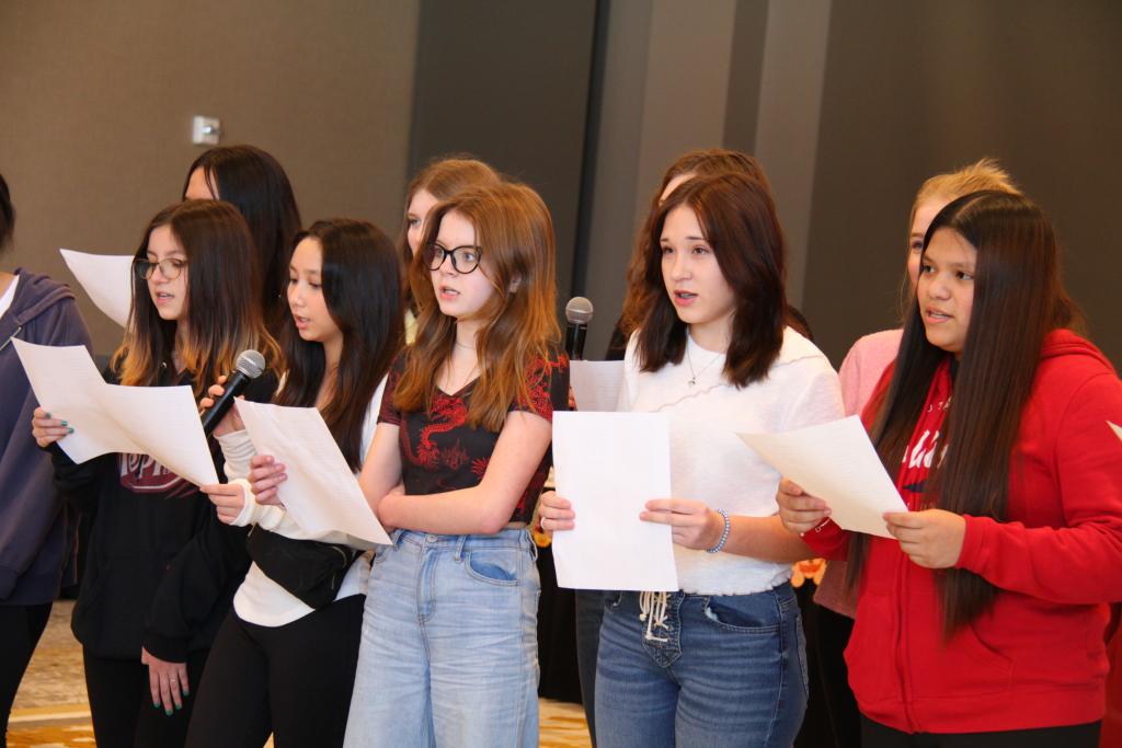 ??2月9日,在馬斯卡廷,馬斯卡廷中學(xué)學(xué)生在演唱中文歌曲。