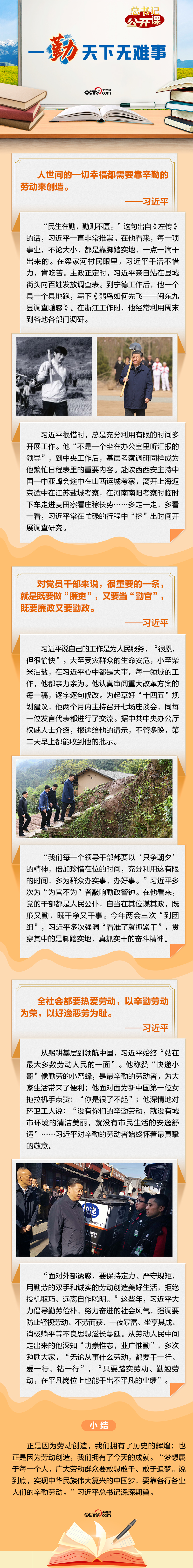 習近平總書記強調(diào),“一勤天下無難事”,“實現(xiàn)中華民族偉大復興的中國夢,要靠各行各業(yè)人們的辛勤勞動”?!扒凇笔秦灤┛倳洀恼牡钠焚|(zhì),是對他夙夜在公、勤勉工作最為凝練的概括。