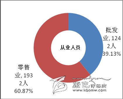 在批發(fā)和零售業(yè)企業(yè)法人單位中,批發(fā)業(yè)占27.45%,零售業(yè)占72.55%。在批發(fā)和零售業(yè)企業(yè)法人單位從業(yè)人員中,批發(fā)業(yè)占39.13%,零售業(yè)占60.87%(詳見(jiàn)表3-1)。