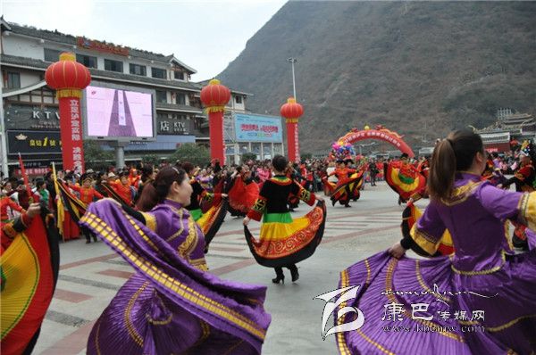 由瀘定縣弦子隊、金甘孜、色達協(xié)會、康定駐瀘協(xié)會組成的藏族方隊;卡迪伲拉、北段社區(qū)、夕陽紅、瀘橋鎮(zhèn)演出隊組成的彝族方隊;企業(yè)協(xié)會和教師協(xié)會組成的扇子方隊;巾幗腰鼓隊和南段社區(qū)瀘園快樂隊組成的鑼鼓方隊等演出人員穿上節(jié)日的盛裝,與全縣人民喜迎新春。